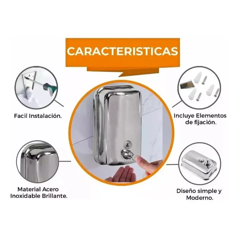 • Resistente a la corrosión, una manera eficiente para dispensar el jabón.